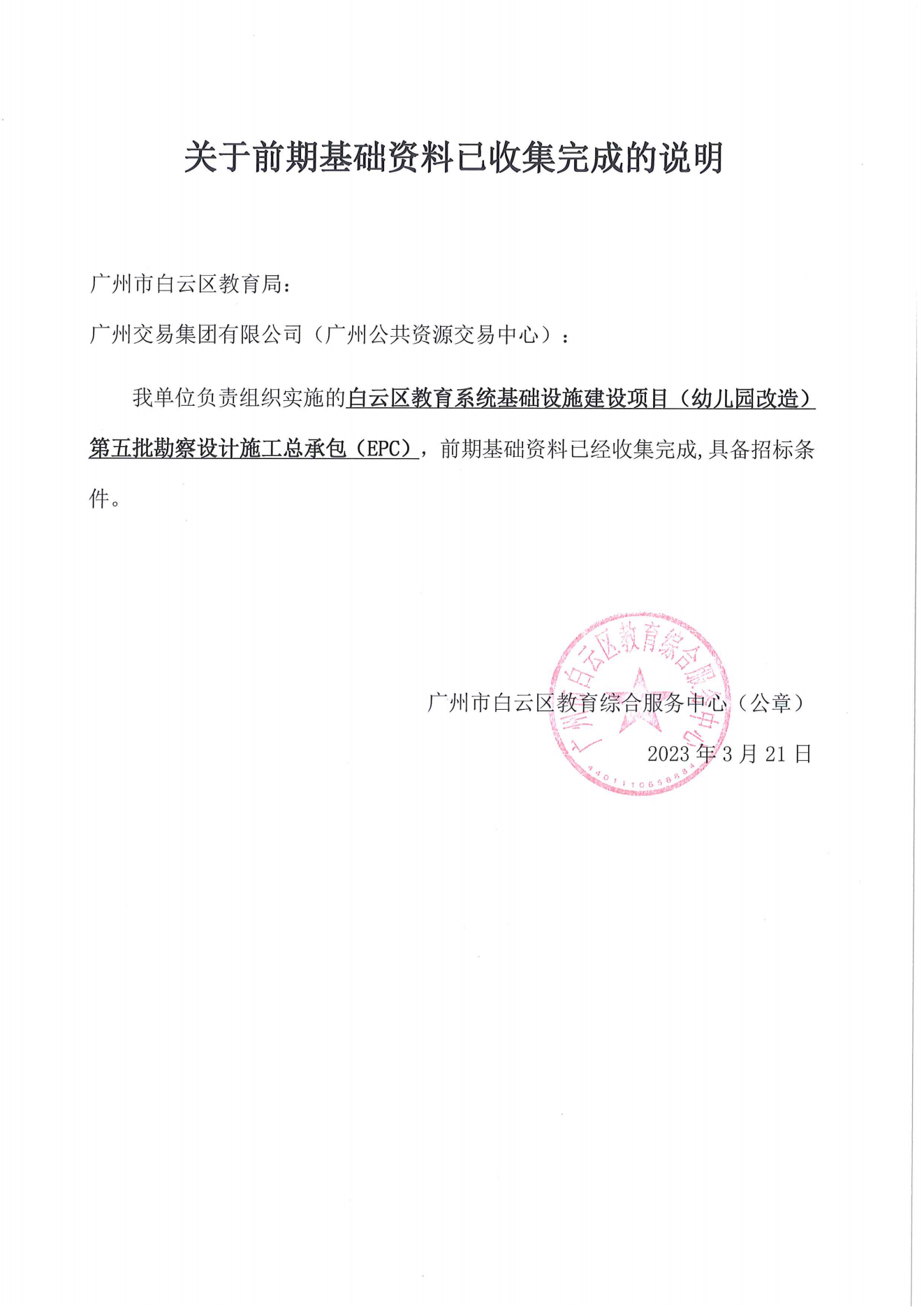 - 项目名称: 白云区教育系统基础设施建设项目(幼儿园改造)第五批勘察设计施工总承包(EPC)