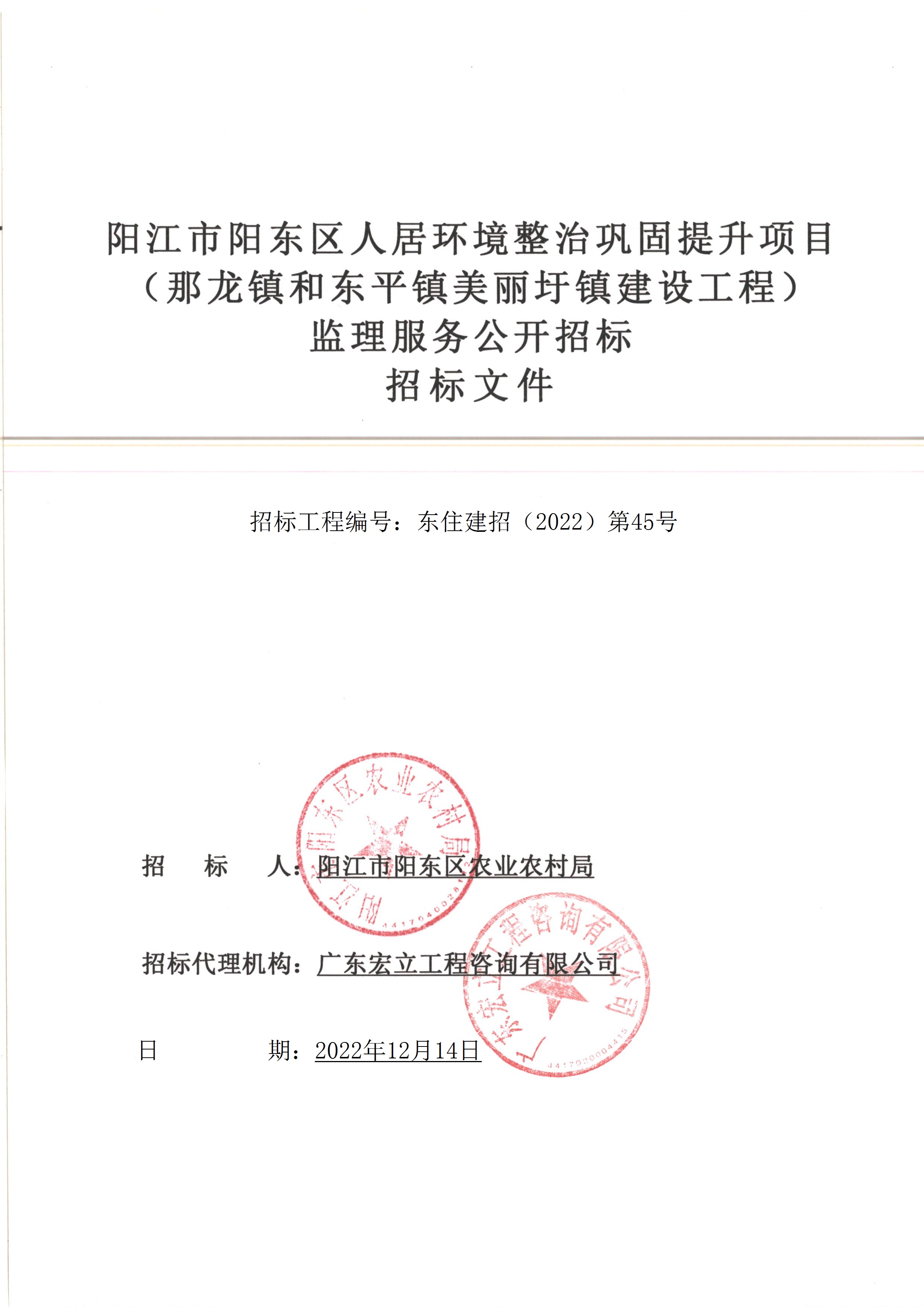 招标项目名称:阳江市阳东区人居环境整治巩固提升项目(那龙镇和东平镇美丽圩镇建设工程)(监理)