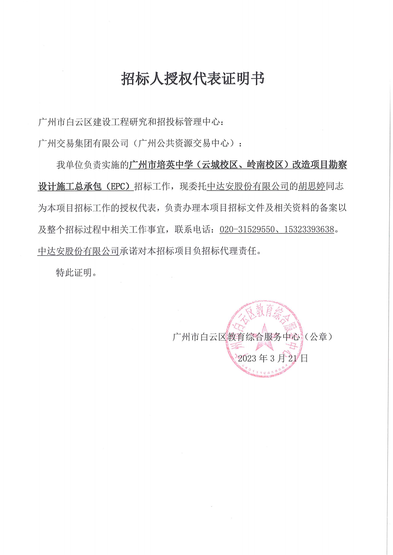 - 广州市培英中学(云城校区、岭南校区)改造项目 勘察设计施工总承包(EPC)-委托函.pdf