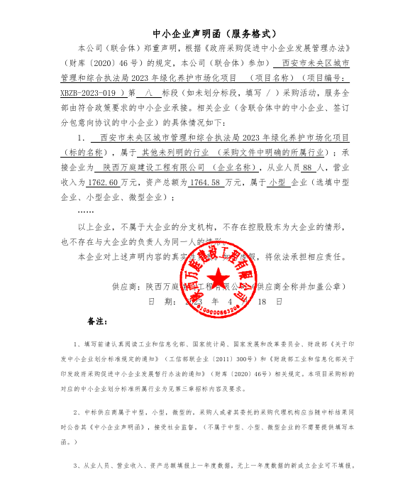 - 项目名称: 西安市未央区城市管理和综合执法局2023年绿化养护市场化项目