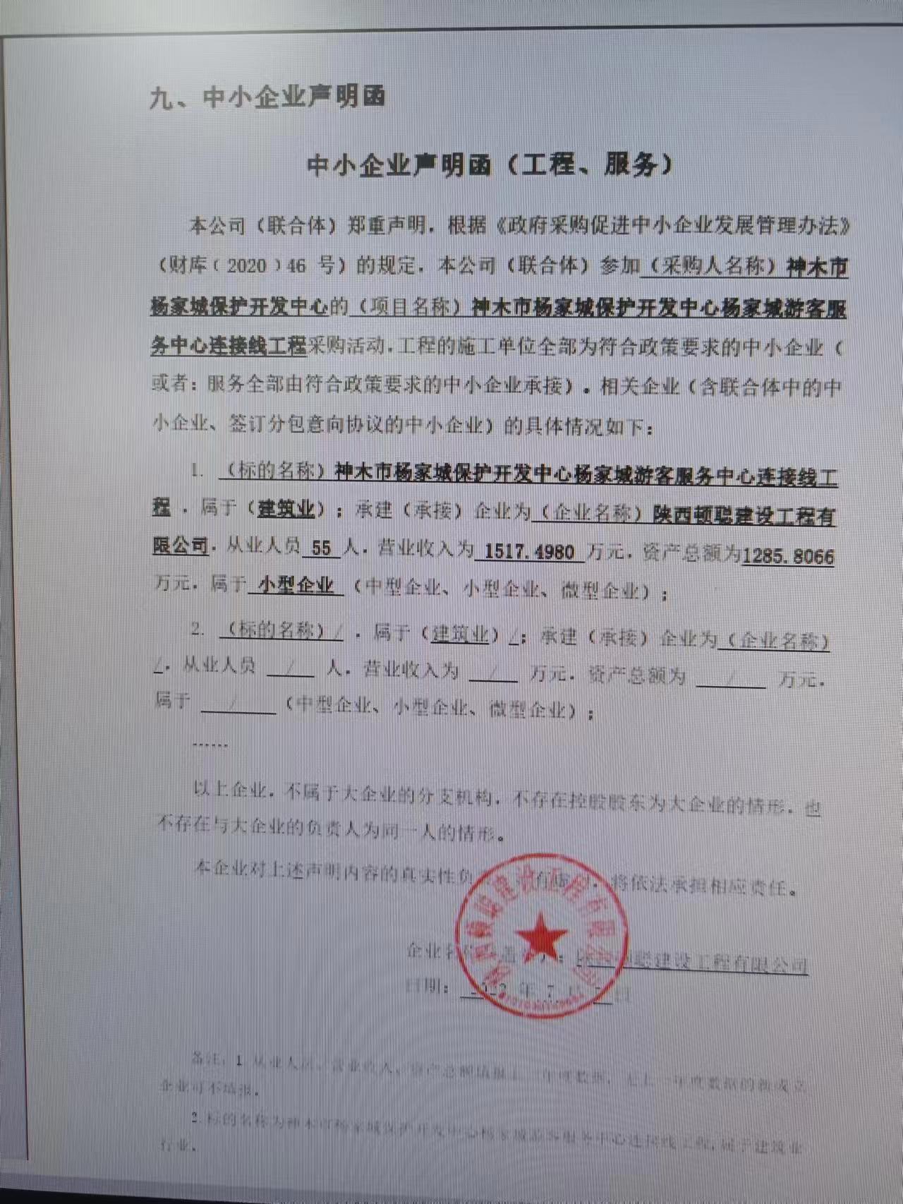 神木市杨家城保护开发中心杨家城游客服务中心连接线工程中标(成交)结果公告