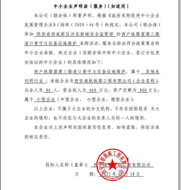 陕西省西咸新区沣东新城安全监管部西户铁路富源三路道口看守与设备设施维护中标结果公告