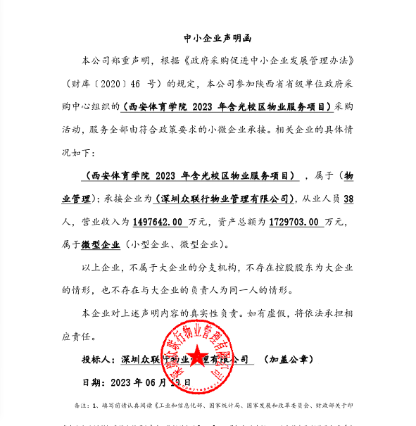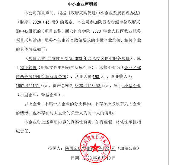 西安体育学院2023年含光校区物业服务项目采购结果公告