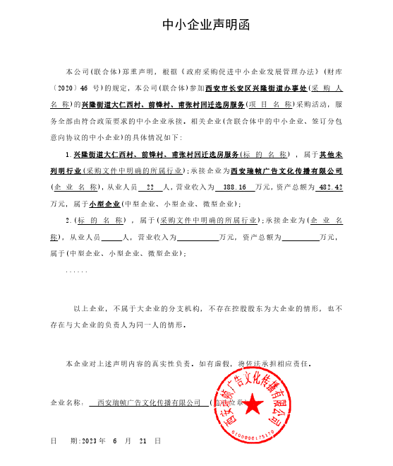 - 项目名称: 西安市长安区兴隆街道办事处大仁西村前锋村甫张村回迁选房服务