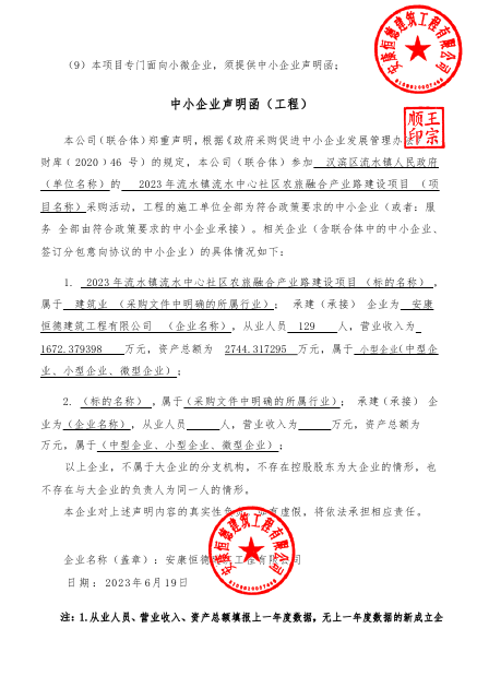 - 概况: 2023年流水镇流水中心社区农旅融合产业路建设项目的潜在供应商应在全国公共资源交易平台(陕西省安康市)获取采购文件,并于2023年06月19日14时00分(北京时间)前提交响应文件 ; 项目编号:SXLW-AK-CG-202308 项目名称:2023年流水镇流水中心社区农旅融合产业路建设项目 采购方式:竞争性磋商 预算金额:1,840,000.00元 采购需求: 合同包1(2023年流水镇流水中心社区农旅融合产业路建设项目): 合同包预算金额:1,840,000.00元 合同包最高限价:1,840,000.00元 品目号品目名称采购标的数量(单位)技术规格、参数及要求品目预算(元)最高限价(元)品目号:1-1品目名称:公路工程施工采购标的:新修产业连接路1.881公里,路基宽度为4.5米,沥青混凝土路面3.5米,厚度0.37米