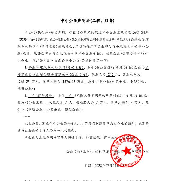 - 项目名称: 榆林市第二强制隔离戒毒所物业管理服务项目